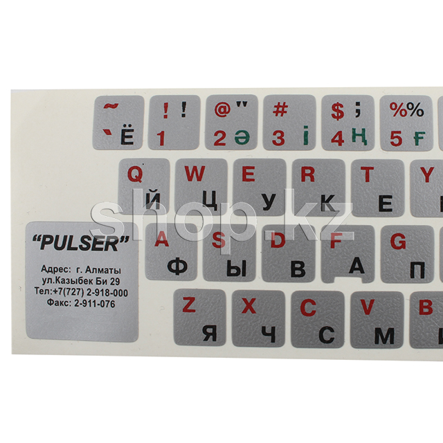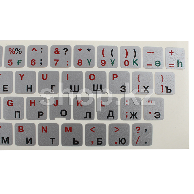 Наклейки на клавиатуру (серебристая основа - красные, черные, зеленые буквы)