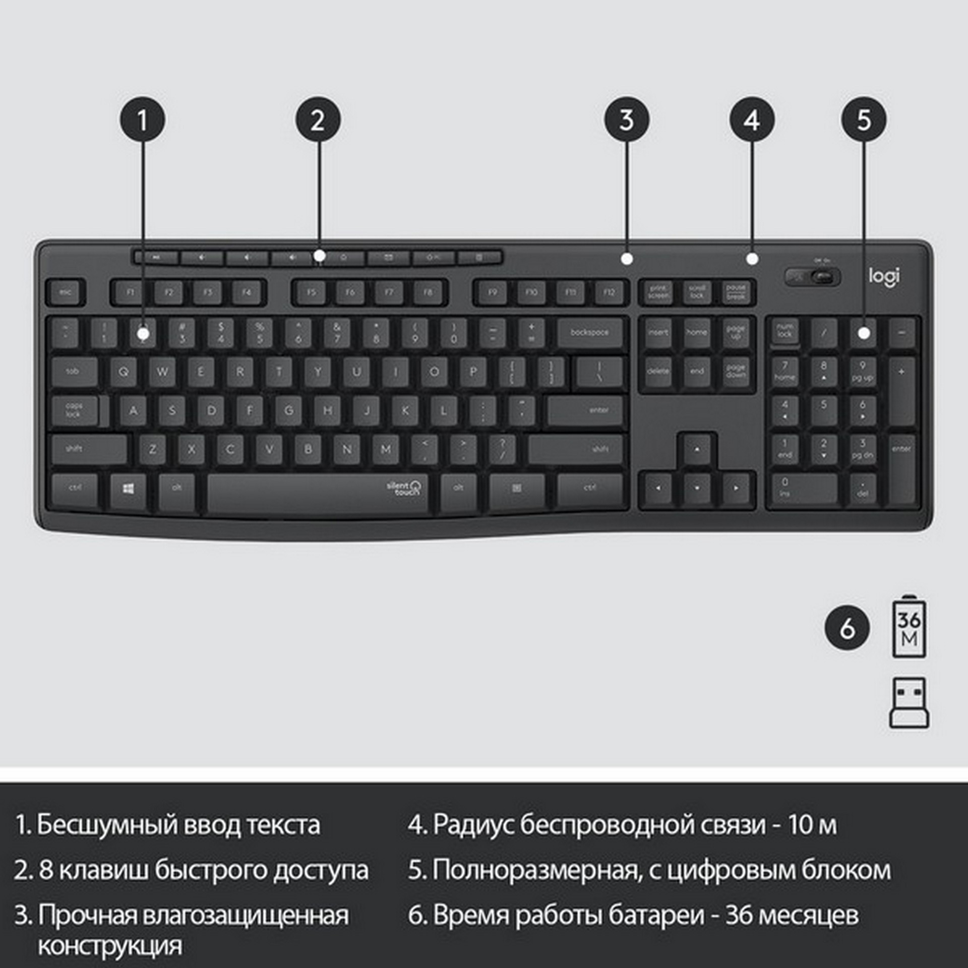 Клавиатура Logitech MK295, Black, USB + мышь